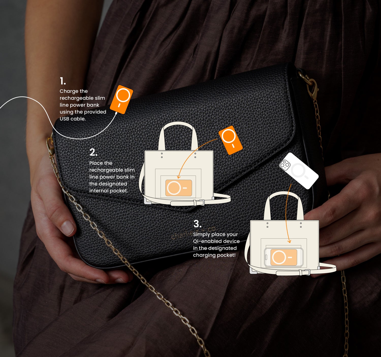 The Franki Bag is stylish, functional, and the wireless charging feature is a total game-changer. It keeps me powered up and looking polished all day. So worth it!